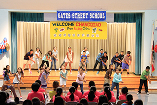 11)Shaoxing Middle school teachers and students and their America sister school teachers and students performed together on the same stage.
