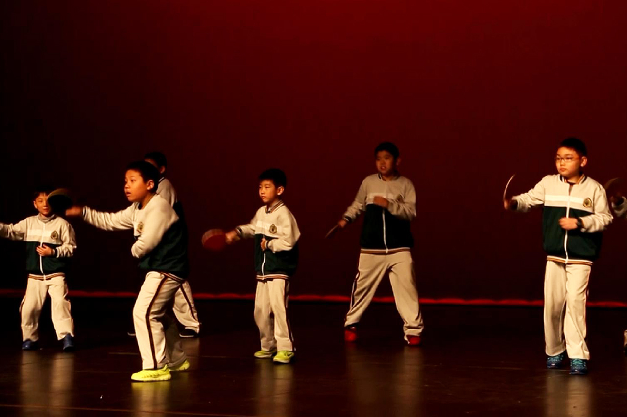 10)Changqiao primary school teachers and students and their America sister school teachers and students performed together on the same stage, the students performed ping-pong operation